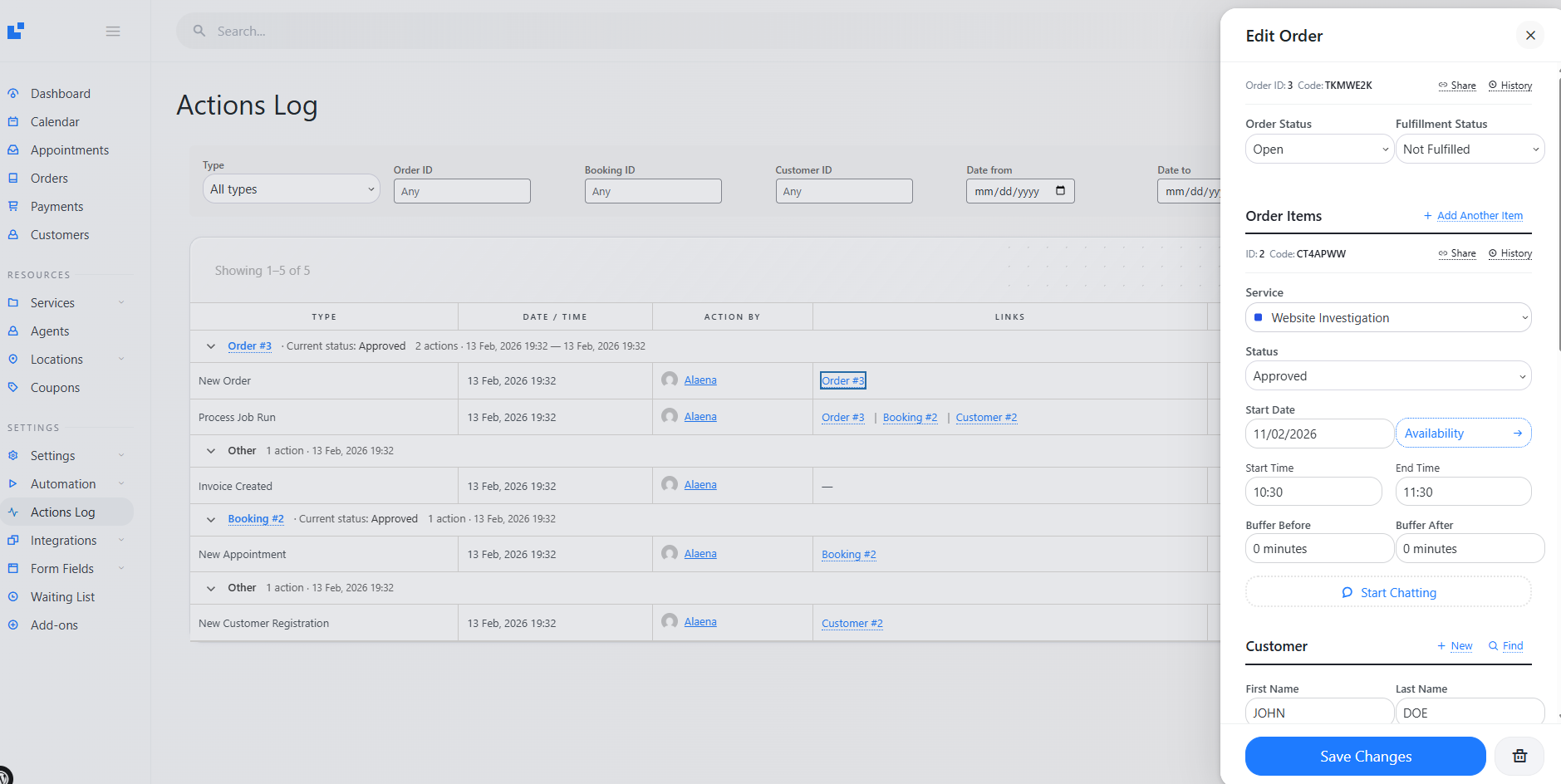 Orders. Bookings. Status changes. Customer updates.