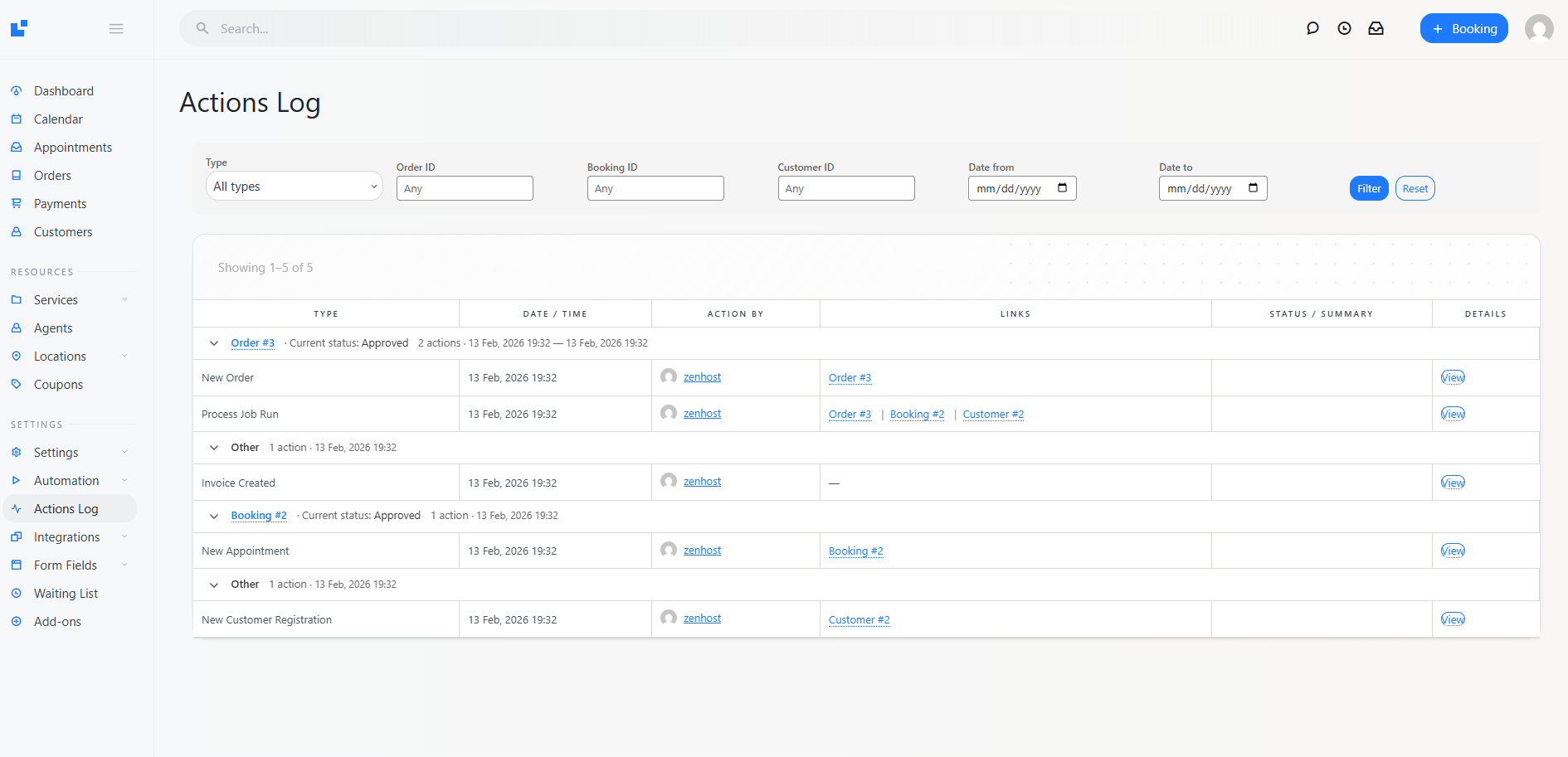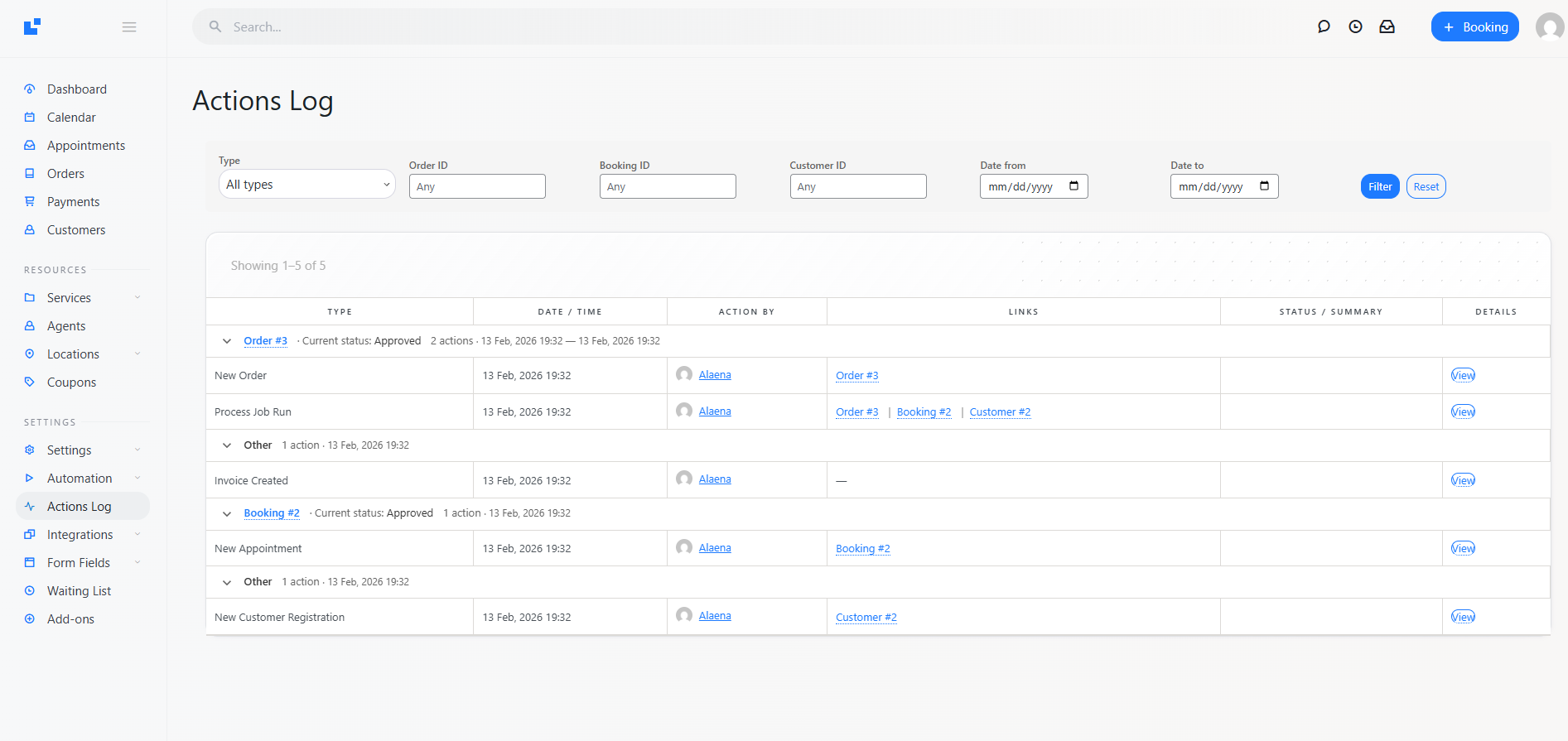 Displays all LatePoint system actions in a single, powerful activity table — so you can investigate exactly what happened and when.
