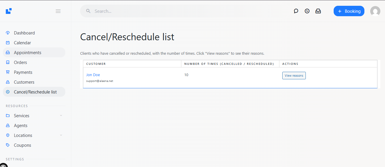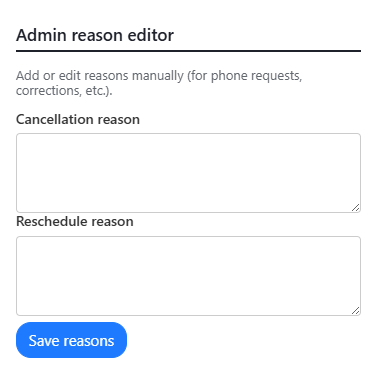 - Edit the cancellation or reschedule reason directly inside the booking, which is useful for phone bookings or manual corrections.