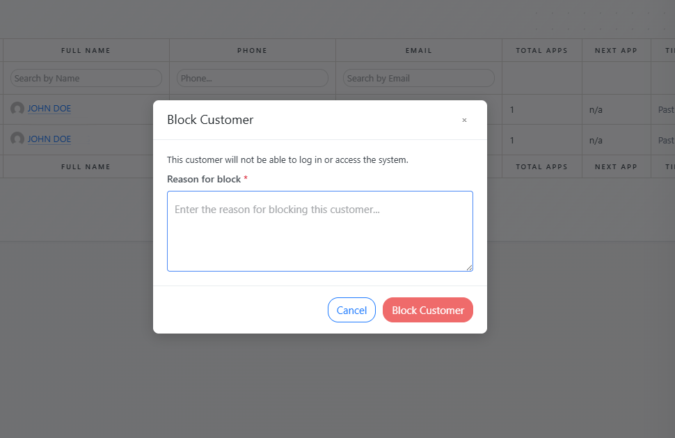 Latepoint - Customer Blocker