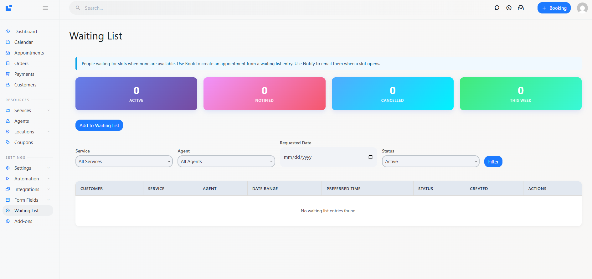 This addon allows customers to join a waiting list when no time slots are available — and automatically notifies them when a cancellation happens.