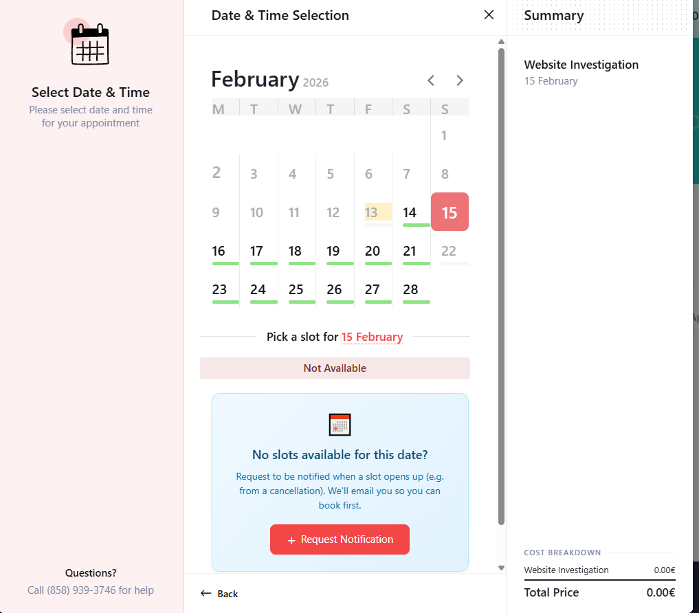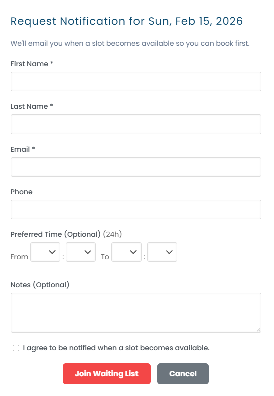 The “Join Waiting List” option appears automatically when a day is fully booked.
