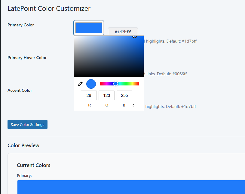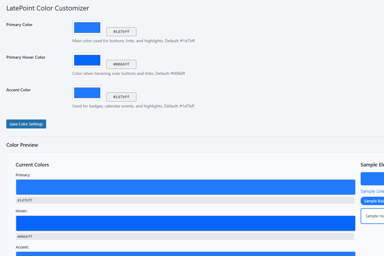 Click the Default Blue preset or deactivate the plugin to instantly restore LatePoint’s original theme.