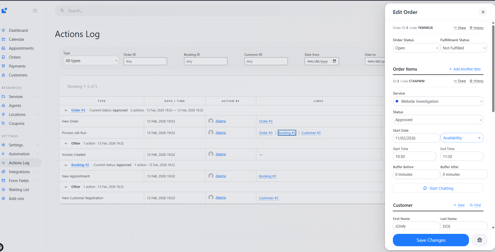 Orders. Bookings. Status changes. Customer updates.