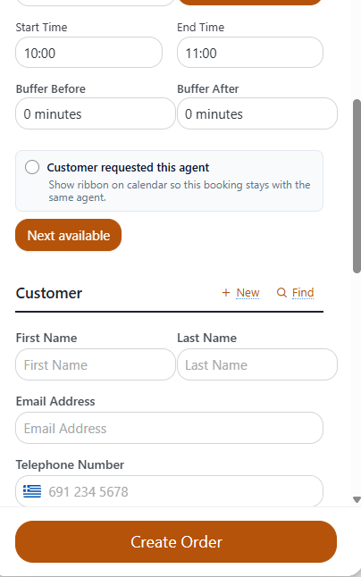 When creating a booking:
